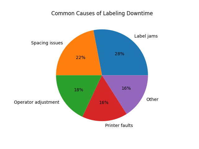 Labeling downtime typically results from repeated small interruptions rather than major failures. Common causes include label jams, inconsistent spacing, sensor misreads, printer communication issues and operator adjustments.
